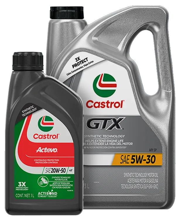 5 botellas de 946 ml o 1 garrafa de 4.73 L de Castrol GTX, o 4 botellas de 1 L o 946 ml de Castrol Actevo